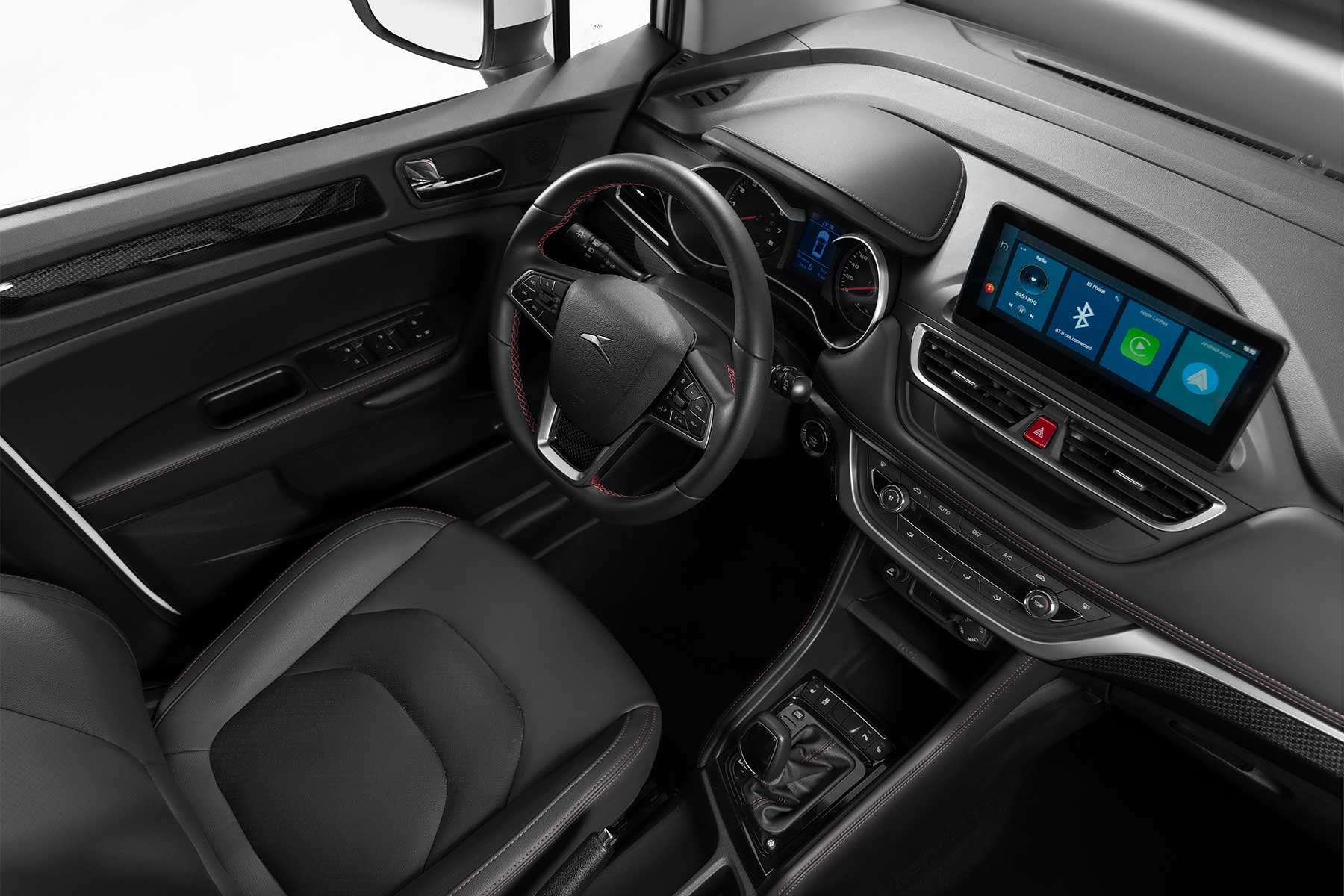 نمایشگر مرکزی 10.23 اینچی لمسی با پشتیبانی از Apple CarPlay و Android Auto تجربهای مدرن و راحت را برای سرنشینان فراهم میسازد.